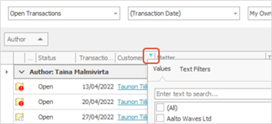 - You can group list data, for example, by author, by dragging the Author column header to the gray area above the list.