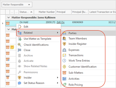 You can also efficiently navigate between windows using the Related function, which can be found on the lists by hovering the cursor over an individual row and right-clicking. This function allows you to directly access the folders under the selected row.