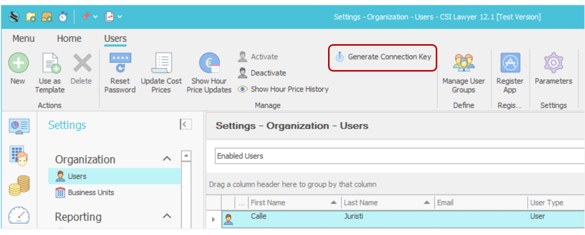 - In CSI software, go to Settings > Users.