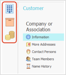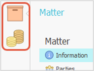 The data stored in the software and the allowed actions for them can be found in folders under different areas. For example, matters, transactions, and invoices are grouped into their own folders. In matter and customer windows that contain many folders, the folders are further grouped under sections.