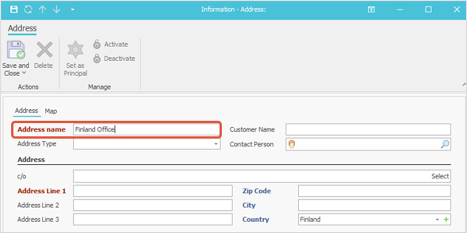 - Save the visiting address in the customer's information under the Address tab.