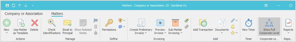 - Select the Show Full Corporate Level button on the ribbon.