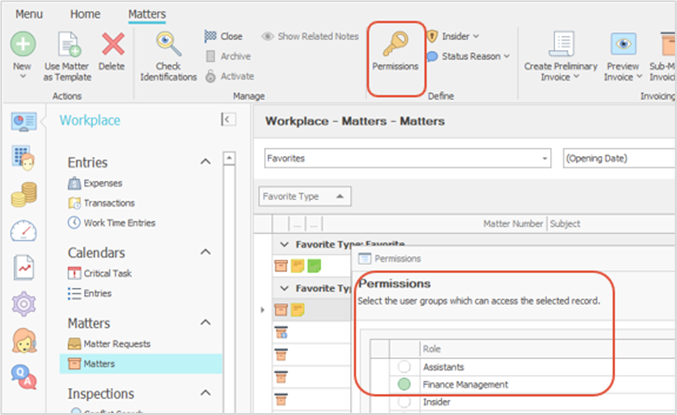 Restricting Matter Visibility with Permissions