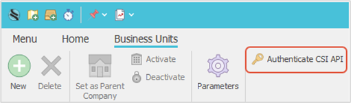 - On the ribbon, click on “Authenticate CSI API”.