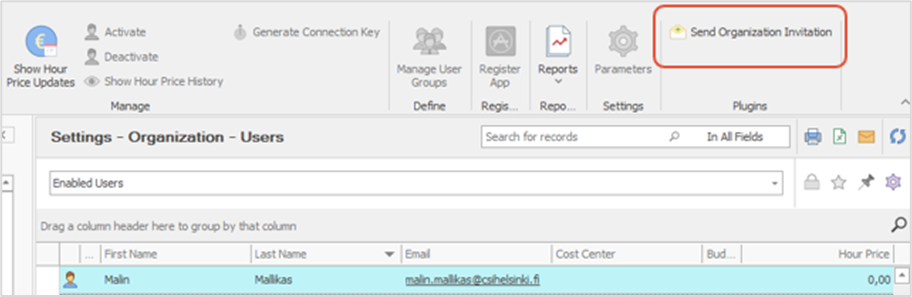 In the Settings of the CSI software > Users, choose the users you wish to invite and click Send Organization Invitation on the ribbon.