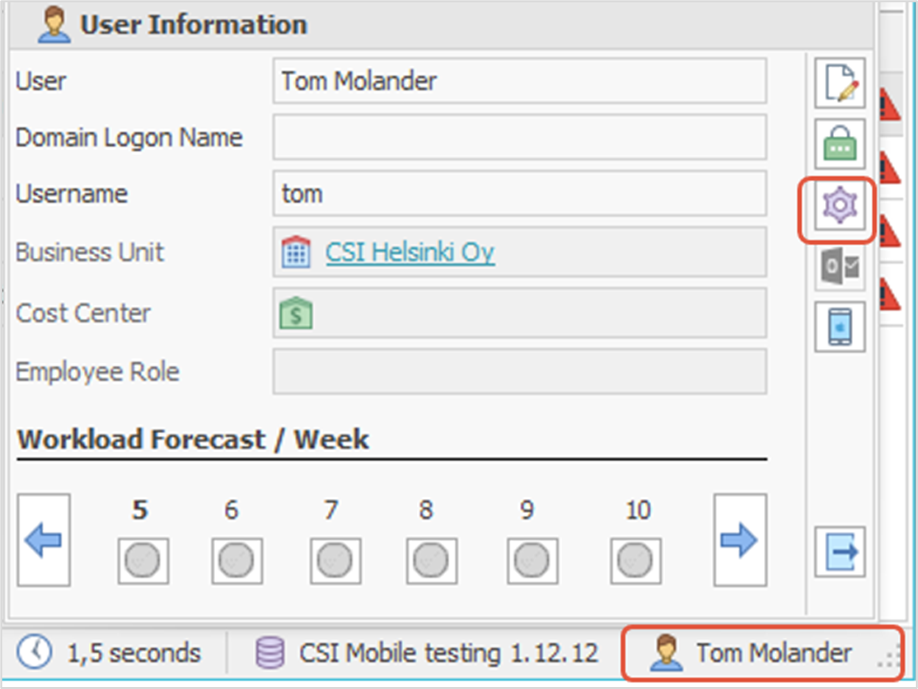 You can do this by selecting your own name in the lower‑right corner of the software and then choosing the Parameters button marked with a gear icon in the window that opens.