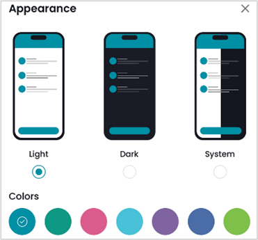 Appearance enables customization of the app’s appearance. You can use the app either in the dark or light mode. You can also select your user interface color from 7 different colors.