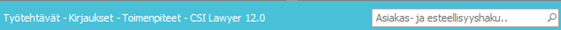 Ikkunan yläpalkissa oleva Asiakas- ja esteellisyyshaku -kenttä on tarkoitettu ensisijaisesti nopeaan asiakkaan esteellisyyden tarkastamiseen. Se soveltuu erinomaisesti myös asiakkaiden pikahakuun, koska ohjelmisto hakee annetulla hakutekijällä tietoja samalla sekä yritysasiakkaiden että yksityishenkilöiden kansioista ja kattaa sekä aktiiviset että passivoidut asiakkaat.