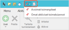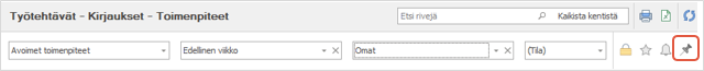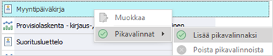 Näkymien ja raporttien kiinnitys pikavalintoihin