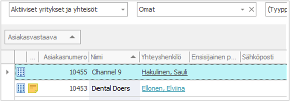 - Asiakas- ja esteellisyyshaku-kansioissa asiakkaan tärkeistä muistiinpanoista muistuttaa keltainen kuvake rivin alussa.