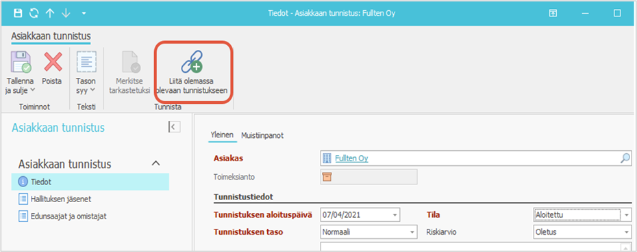 Voit mahdollisesti hyödyntää asiakkaan tunnistamisessa tämän aiempaa tunnistusta. Mikäli asiakkaalta jo löytyy valmiiksi kuitattu, riittävän tasoinen ja edelleen voimassa oleva tunnistus, sen tiedot voidaan kopioida uuteen tunnistustapahtumaan. Tämä helpottaa tunnistusten käsittelyä esimerkiksi, jos asiakkaalla on useampia saman riskitason toimeksiantoja.