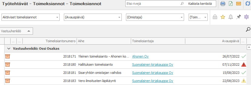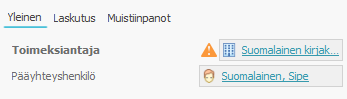 - Keltainen kolmio Toimeksiantaja-kentän edessä merkitsee sitä, että toimeksiantaja tulee tunnistaa.