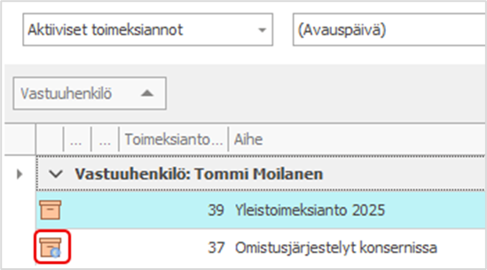 - Kiinteähintainen toimeksianto erottuu nyt toimeksiantolistalla oranssiin toimeksianto-ikoniin ilmestyneestä sinisestä pallosta