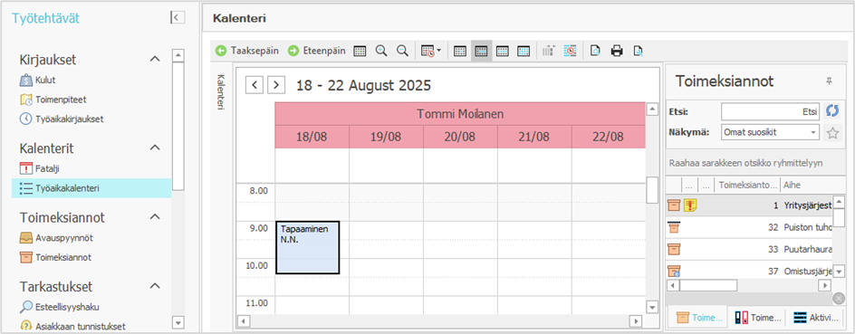 Toimenpidekirjaus työaikakalenterissa työaikakirjauksen yhteydessä
