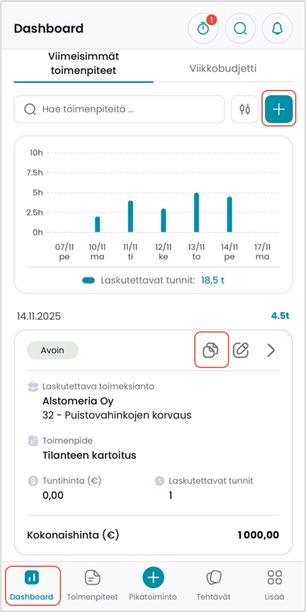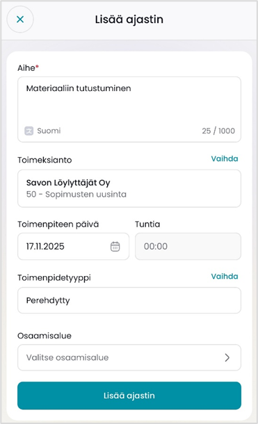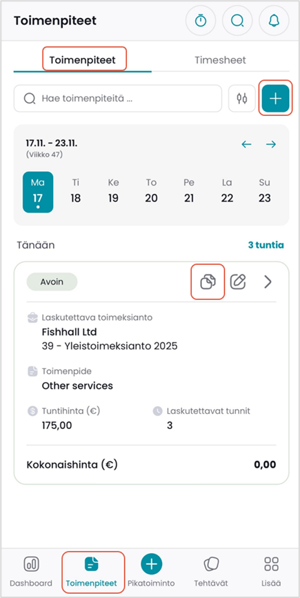 CSI Mobile: Toimenpiteen kirjaamisvaihtoehdot