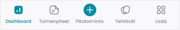 - Pikatoiminto: Uusien toimenpiteiden, tehtävien, fataljien ja työaikakirjausten lisäämiseen.