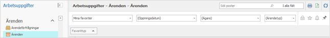 När du förflyttar dig mellan mappar eller uppgiftsområden kommer systemet ihåg de sökningar och filtreringar du gjort i de olika mapparna. På så sätt kan du jobba i en viss klients ärende, sedan förflytta dig till din dashboard för att kontrollera något och därefter gå tillbaka till ärendemappen där du kommer in i samma ärendelista du hade öppen tidigare.