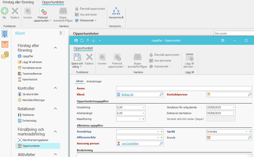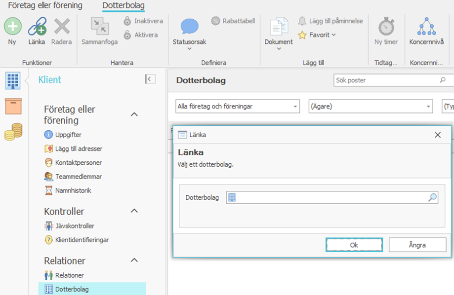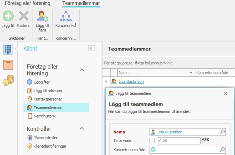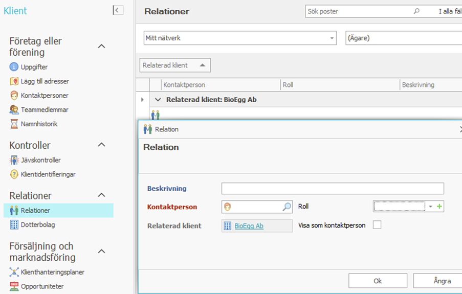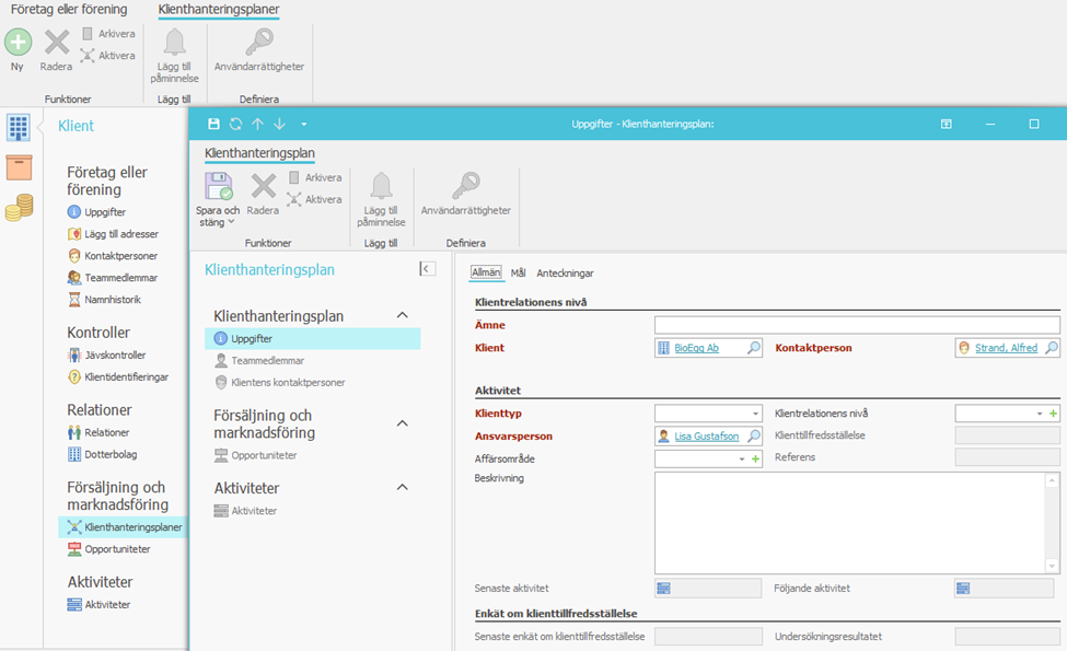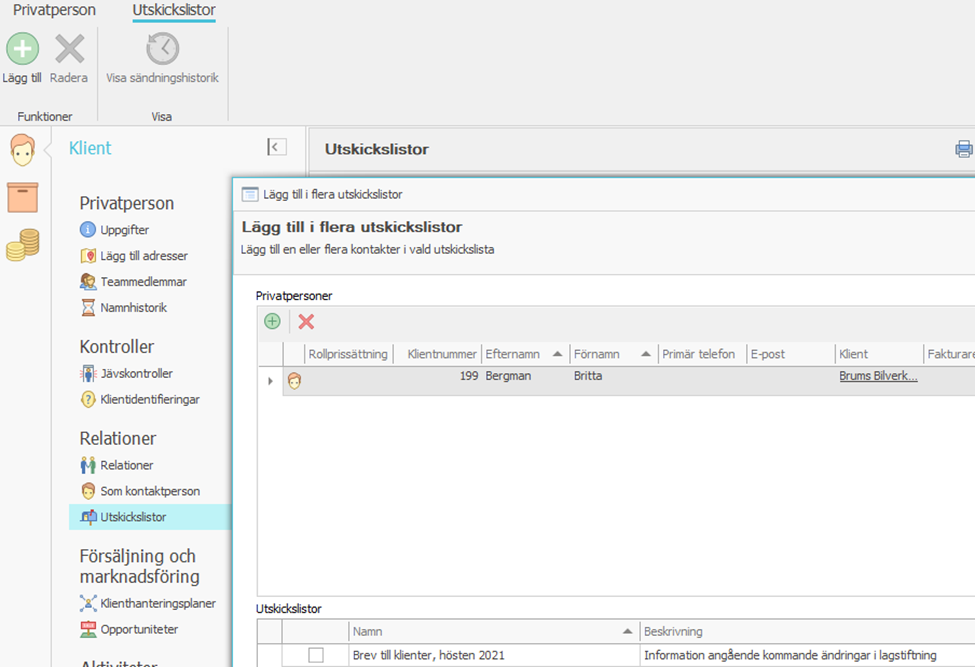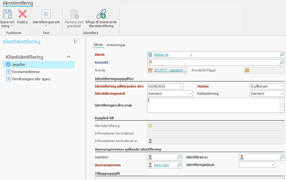 Information som sparas i klientmapparna