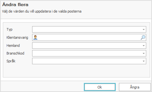 - Fyll i de uppgifter du vill ändra för de valda klienterna i Ändra flera-fönstret som öppnas.
