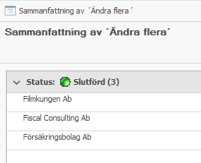 - Sammanfattningsfönstret visar om ändringen lyckades. Dubbelklicka på en enskild rad för att kontrollera dess uppgifter.