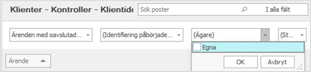 - I Klienter-områdets Klientidentifieringar-mapp listas alla identifieringshändelser. Genom att kryssa i ”Egna” kan du granska dina egna identifieringar.