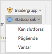 - Klicka på Statusorsak i funktionsraden och välj den status du vill ange för ärendet.