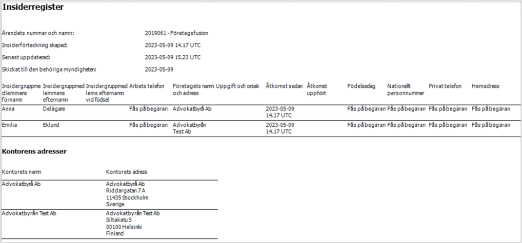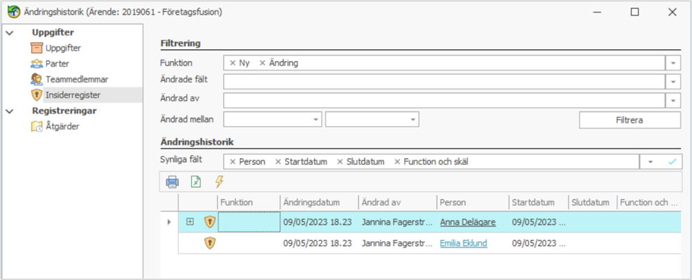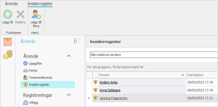 Insiderärenden för hantering av sensitiva ärenden