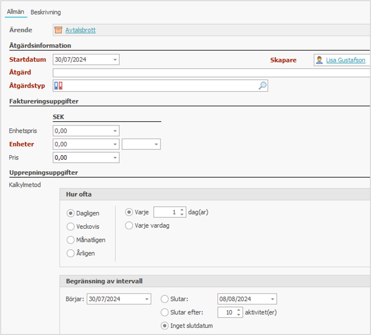 Definiera prenumerationsarvode för ett ärende