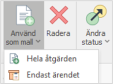 Använd Ny-knappen för att skapa en helt ny registrering, eller Använd som mall-knappen för att använda en tidigare åtgärds information som bas för en ny åtgärd: