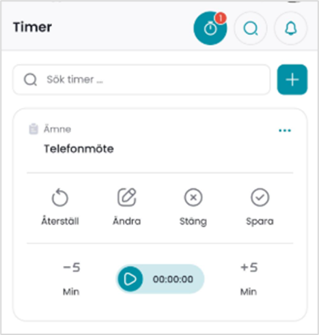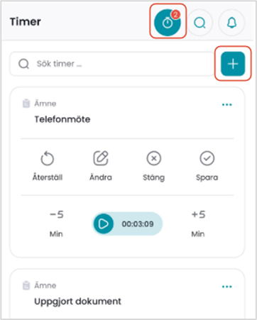 Nya timers öppnas genom att välja knappen “+” bredvid fältet “Sök timer”.